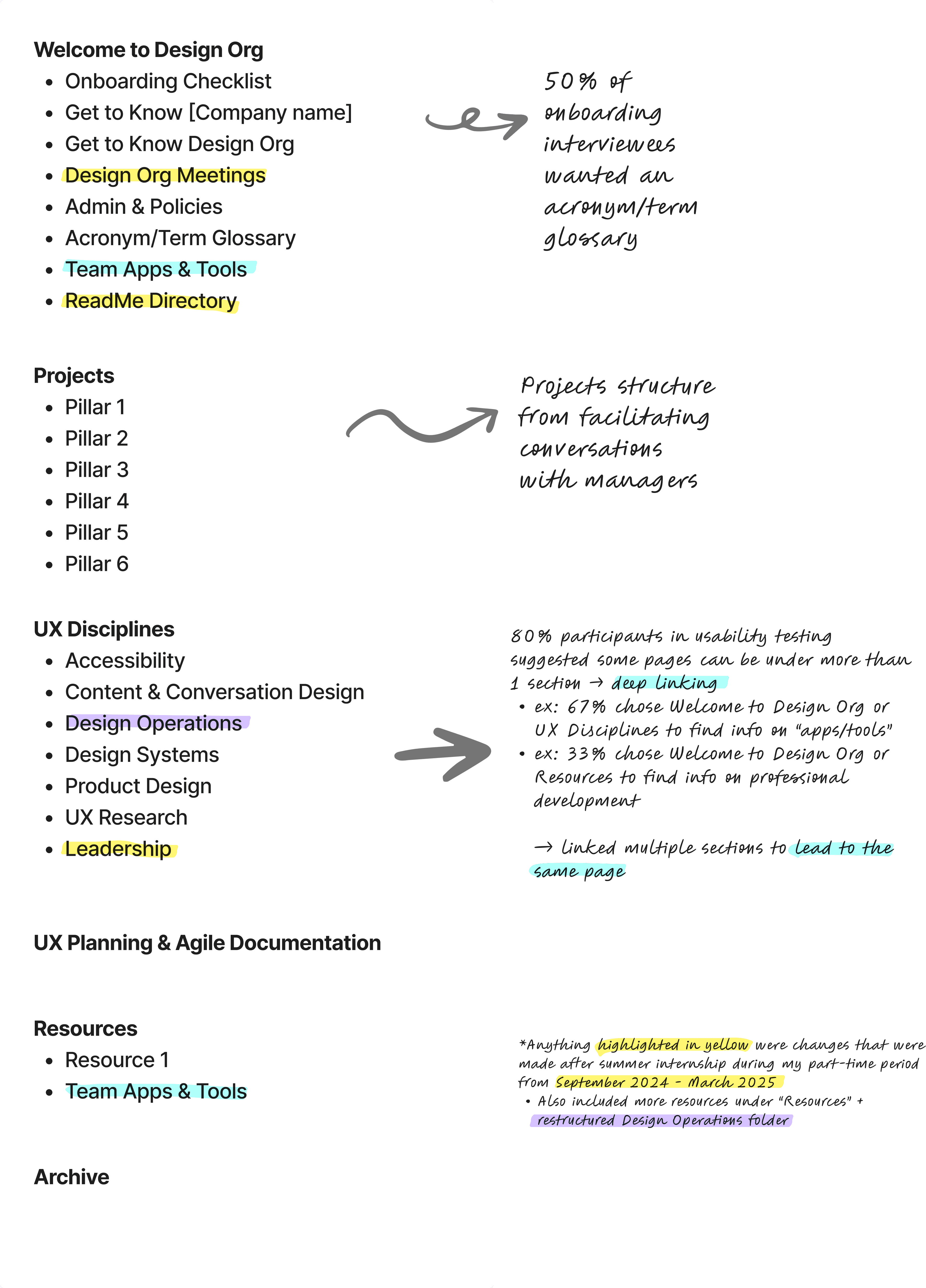 For new hires specifically, I focused on clarity and team integration rather than navigation, since their primary need was orientation rather than finding existing content.