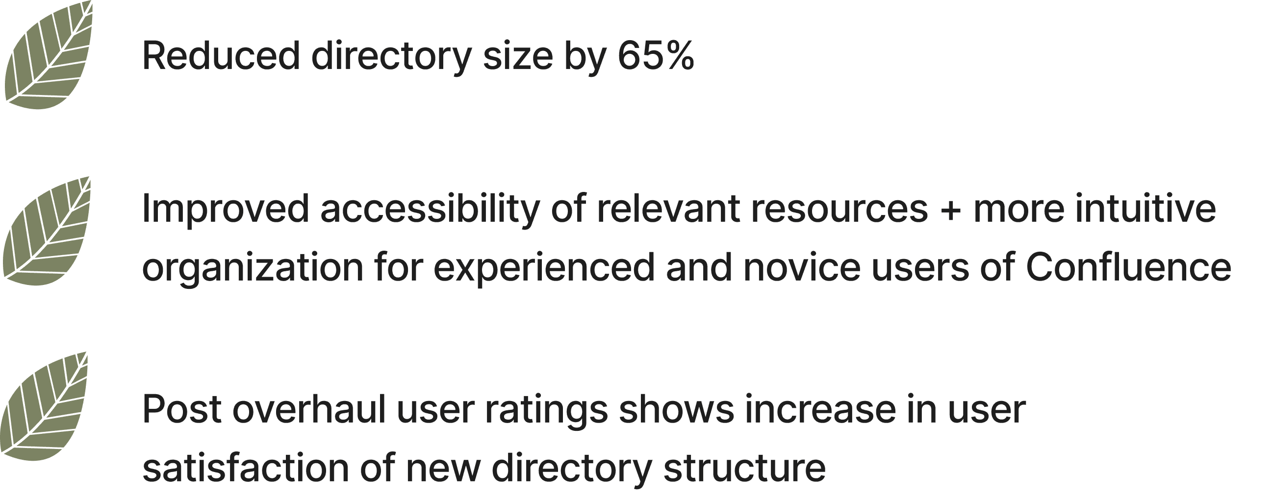 Impact: I reduced a Fortune 25 healthcare company's design team Confluence by 65%, improving navigation confidence from 2.38 to 3.13/5